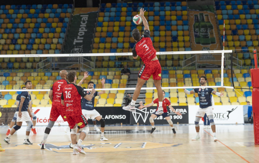 Todo intento rojinegro se topaba con una respuesta de un Cisneros que encontraba en Flores y Duque los puntos necesarios para cerrar la tercera manga con un 17-25, que le daba a los tinerfeños la victoria por la vía rápida (0-3).