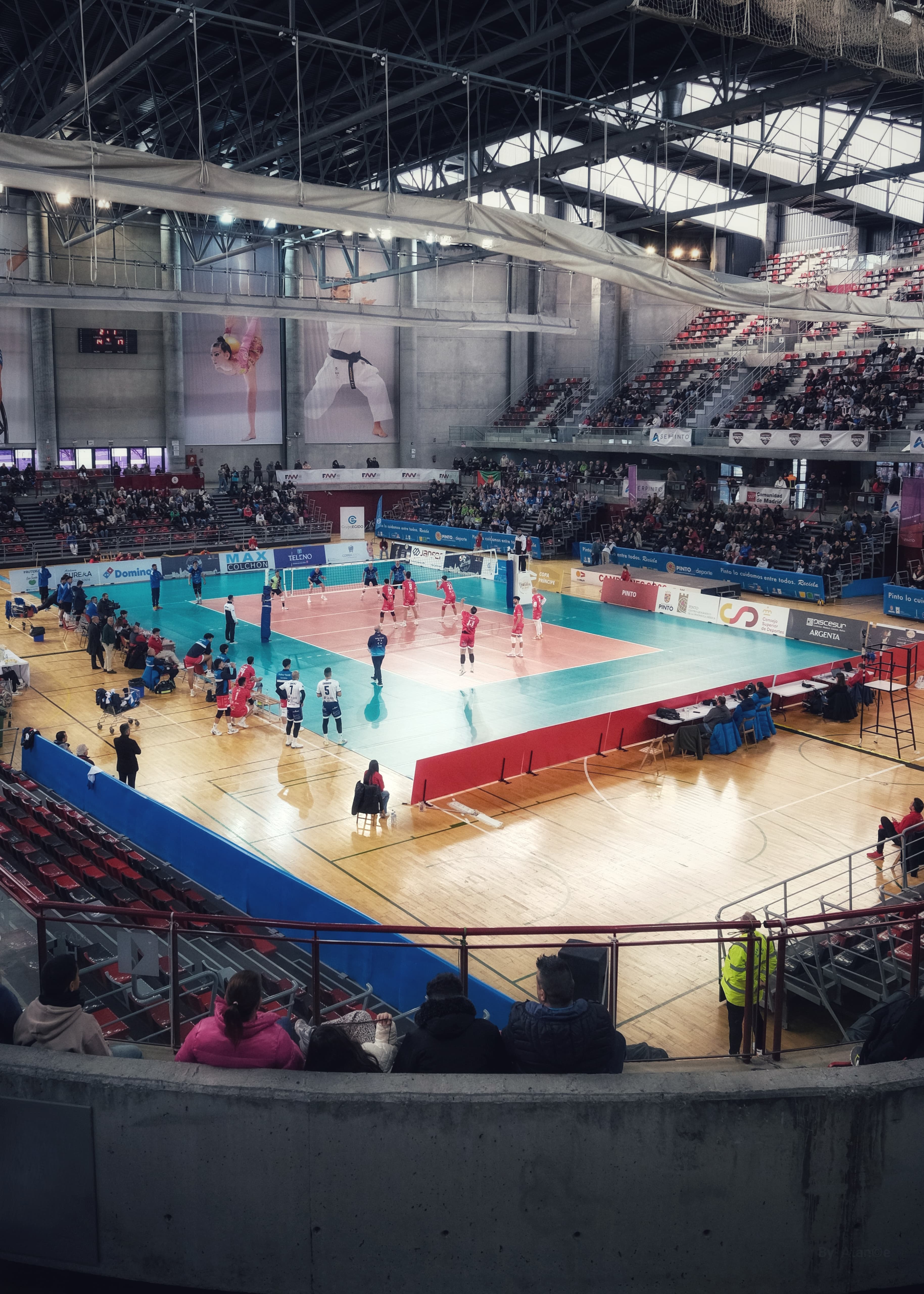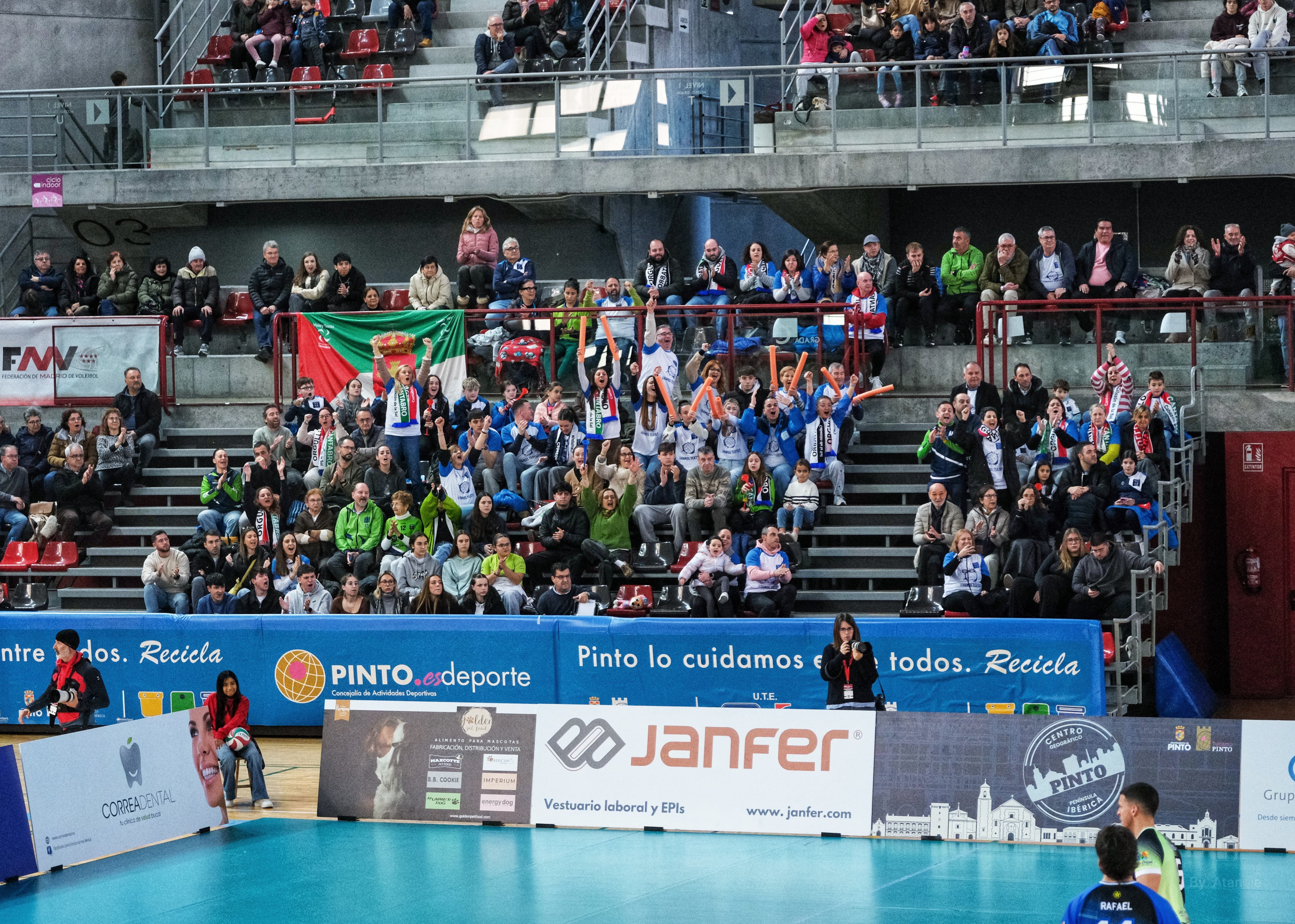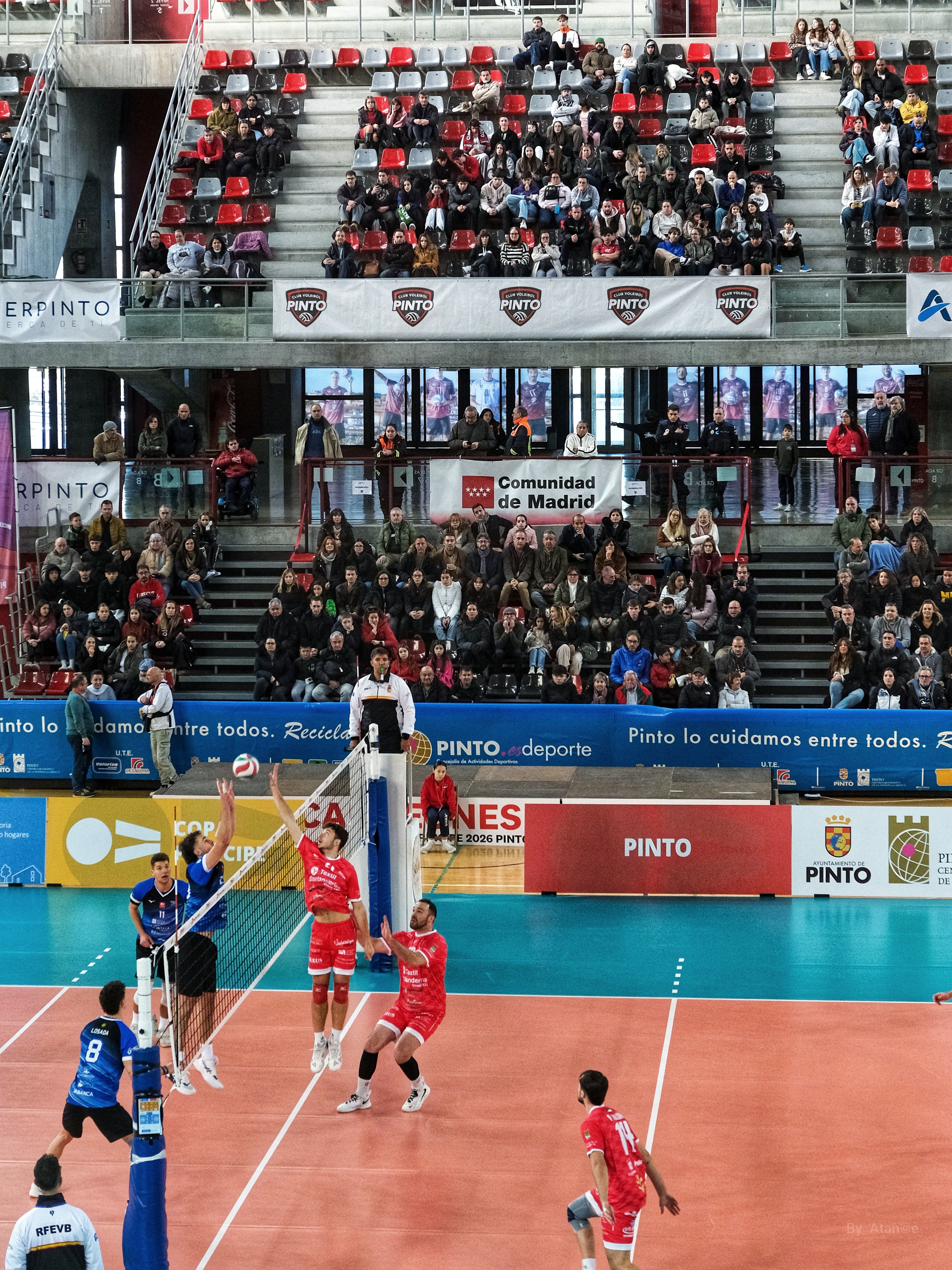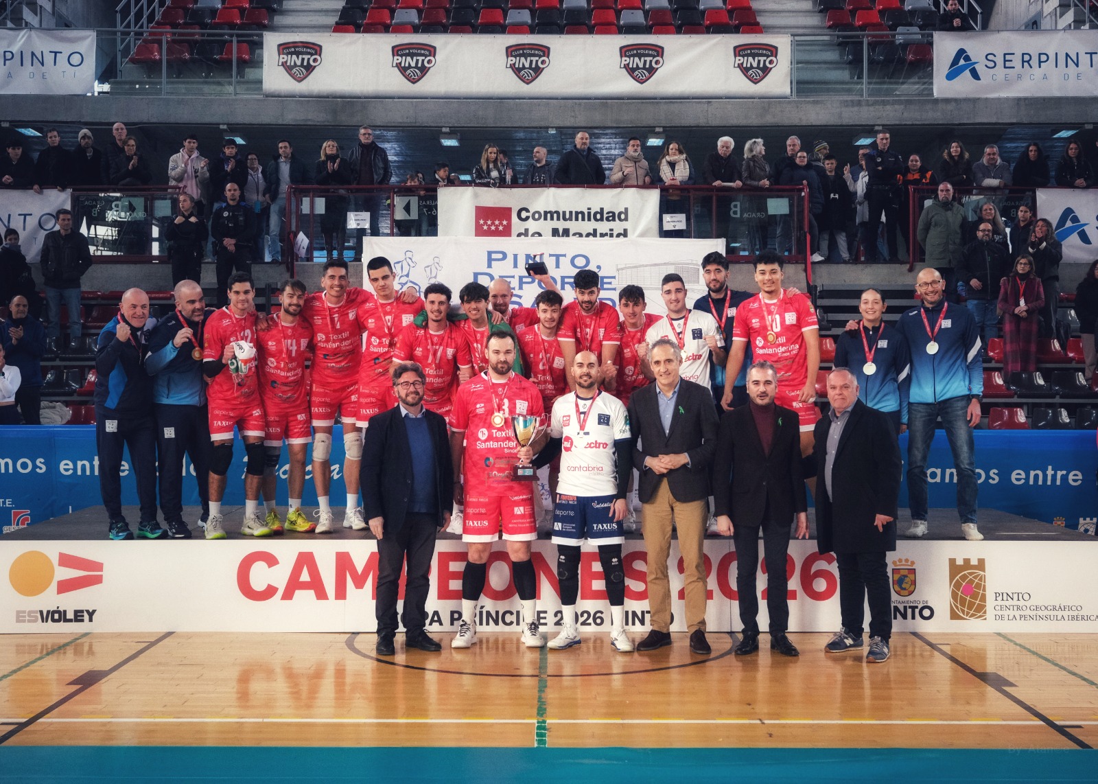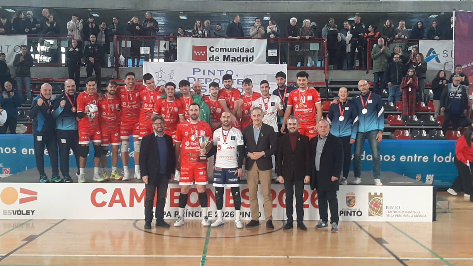 El vicepresidente de la RFEVB, Javier García Romero, junto al Alcalde de Pinto, D. Salomón Aguado Manzanares, entregaron a Víctor Sánchez  y Fran Calzón, capitanes de Textil Santanderina, el trofeo de campeón de la Copa Príncipe.