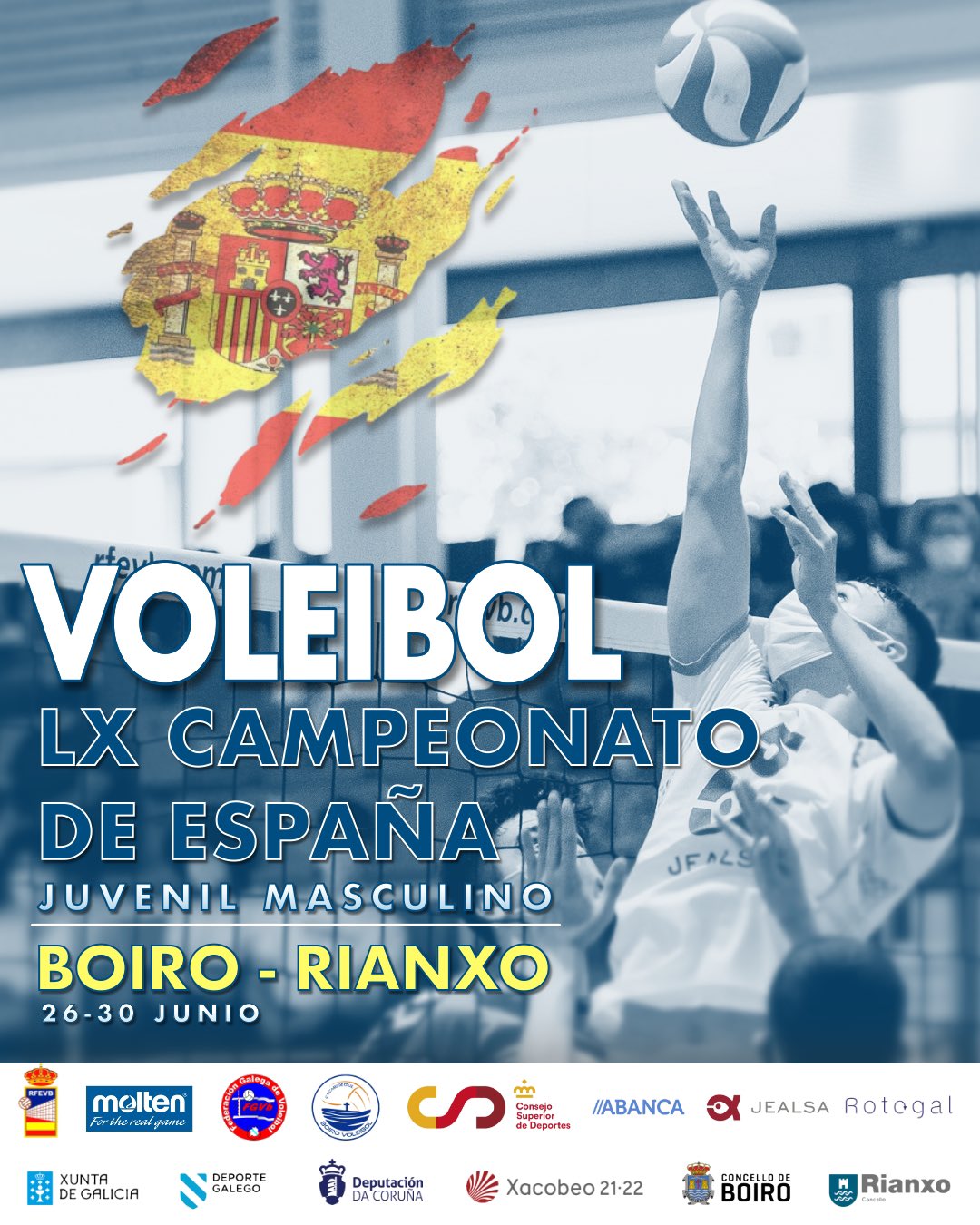 El Campeonato de España Juvenil Masculino llega a Boiro para la celebración de un sensacional torneo con 24 participantes. El foco de atención del vóley nacional se fija en tierras coruñesas para asistir a a lucha por suceder en el palmarés a Xátiva Voleibol, vencedor de la edición de 2019 en Soria. Los participantespondrán rumbo a la localidad coruñesa para un emocionante torneo que coronará al mejor conjunto de base del voleibol español en categoría juvenil.