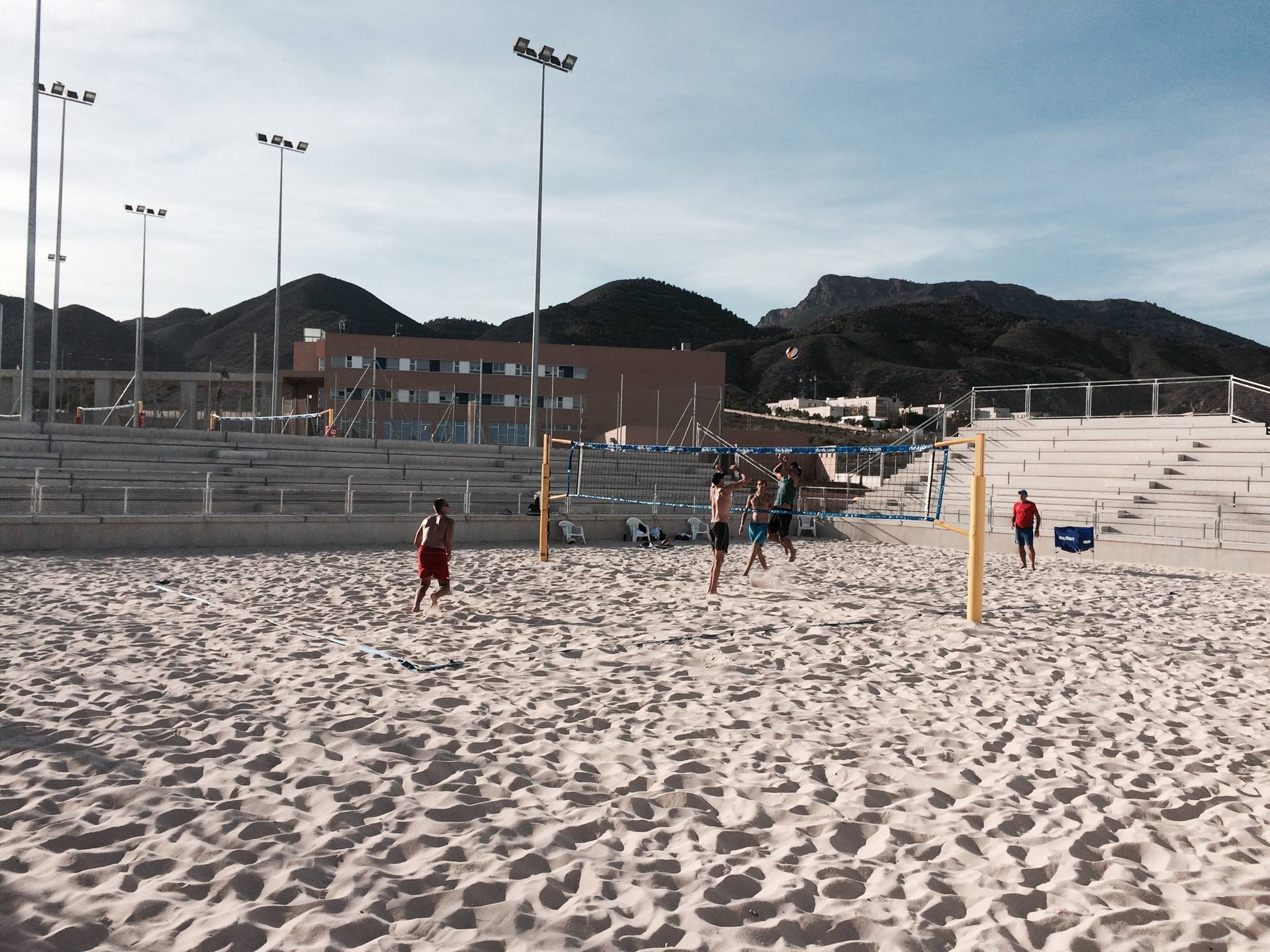 El Centro Internacional de Vóley Playa de Lorca vive sus primeras horas tras la inauguración del pasado lunes y las modernas instalaciones murcianas continúan con su día a día, con varias delegaciones ocupando la residencia y disfrutando de las pistas de la excelente arena lorquina.
