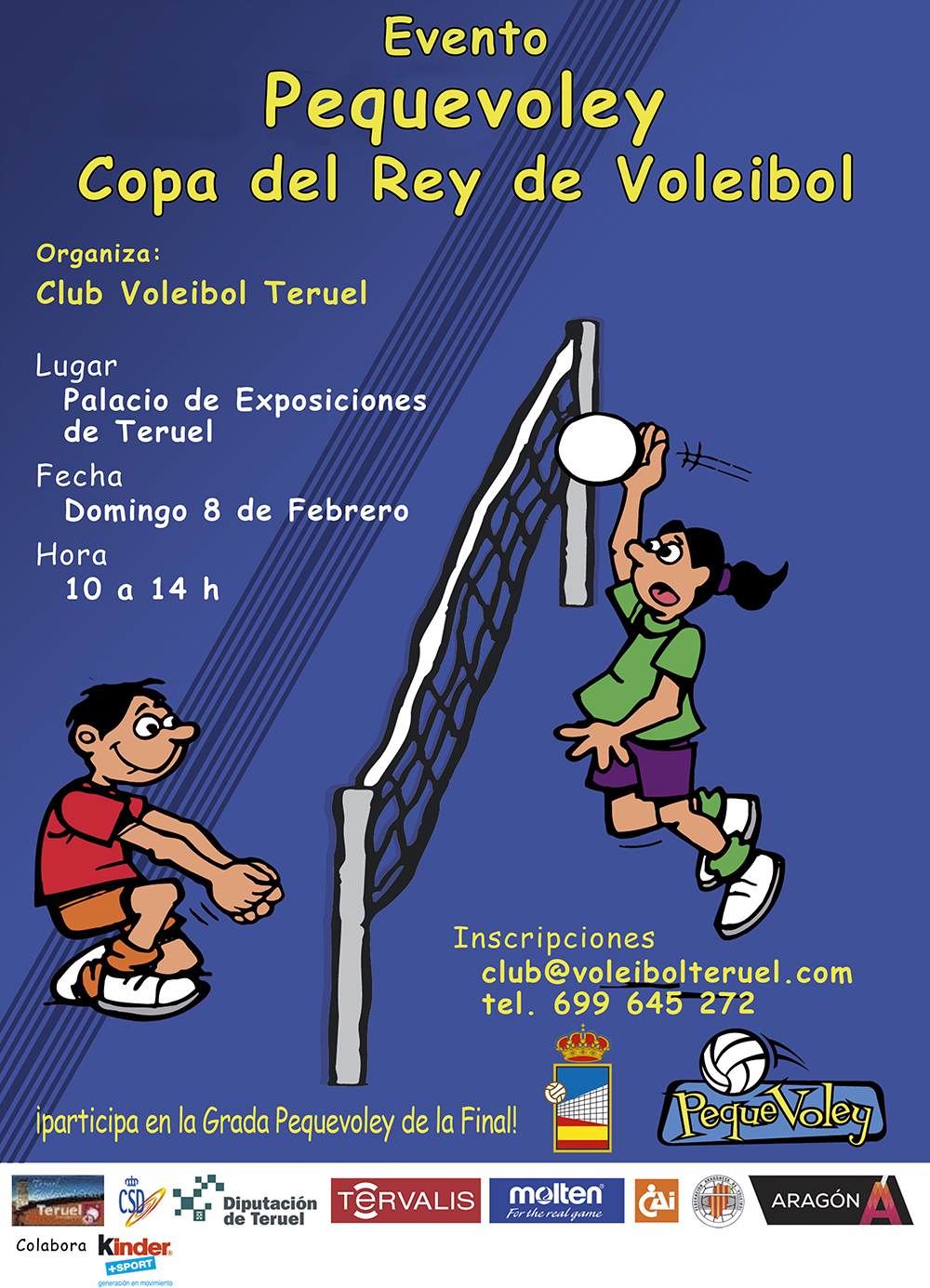 La ciudad de Teruel acogerá el próximo domingo 8 de febrero un Evento Pequevoley que promete constatar la pasión por este deporte de los aficionados más jóvenes. El Palacio de Exposiciones de Teruel será el escenario donde se celebre este acontecimiento que, como en ocasiones anteriores, se pretende que sea un éxito de participación.