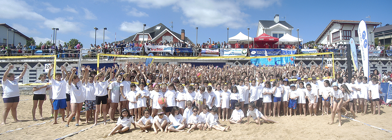 La playa asturiana de Luanco fue el escenario donde se celebró este fin de semana un exitoso Evento Pequevoley. Nada menos que 1200 jóvenes se dieron cita sobre la arena asturiana para disfrutar del mejor voley playa en compañía de amigos, familiares y espectadores que abarrotaron la playa luanquina.