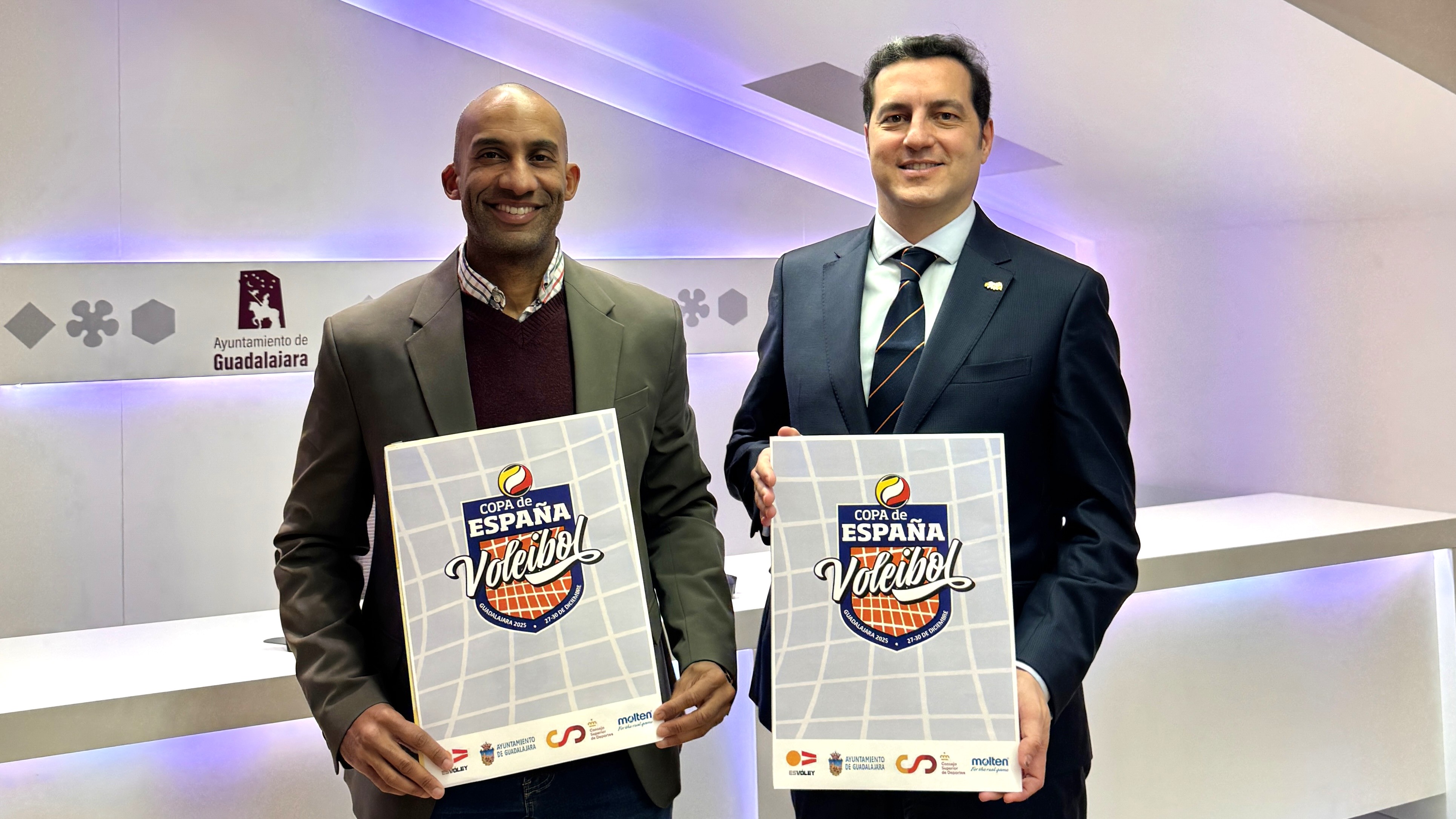 El presidente de la Real Federación Española de Voleibol, Felipe Pascual, y el concejal de Deportes del Ayuntamiento de Guadalajara, Armengol Engonga, han presentado esta mañana la Copa de España de Voleibol, que se celebrará en la ciudad del 27 al 30 de diciembre. Este evento, que nació en Guadalajara y es considerado el mayor punto de encuentro del voleibol base en España, reunirá a más de 250 equipos y 3.000 deportistas, procedentes de todas las comunidades autónomas.