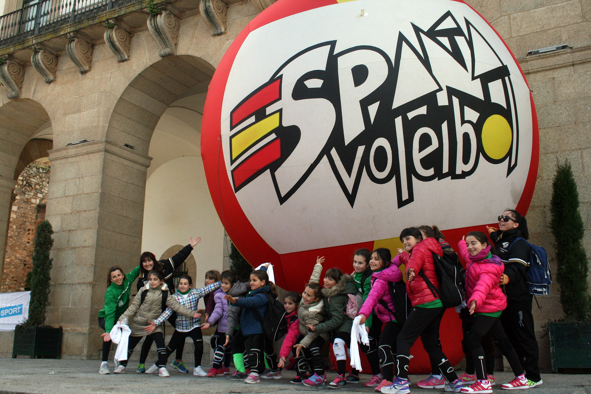 La Plaza Mayor de Cáceres fue tomada por más de ochocientos deportistas en las horas previas a la celebración de la final de la XLI Copa del Rey. La localidad extremeña acogió uno de los eventos Pequevoley más espectaculares y multitudinarios, un acto en el que estuvieron presentes miembros de varios de los conjuntos participantes en el torneo del KO y que disfrutaron del esfuerzo y la ilusión de los más jóvenes jugadores.