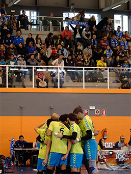 UBE L'illa Grau - CV Mediterráneo Los graueros conjurándose en un tiempo muerto (Foto: Alejandra Pallarés)