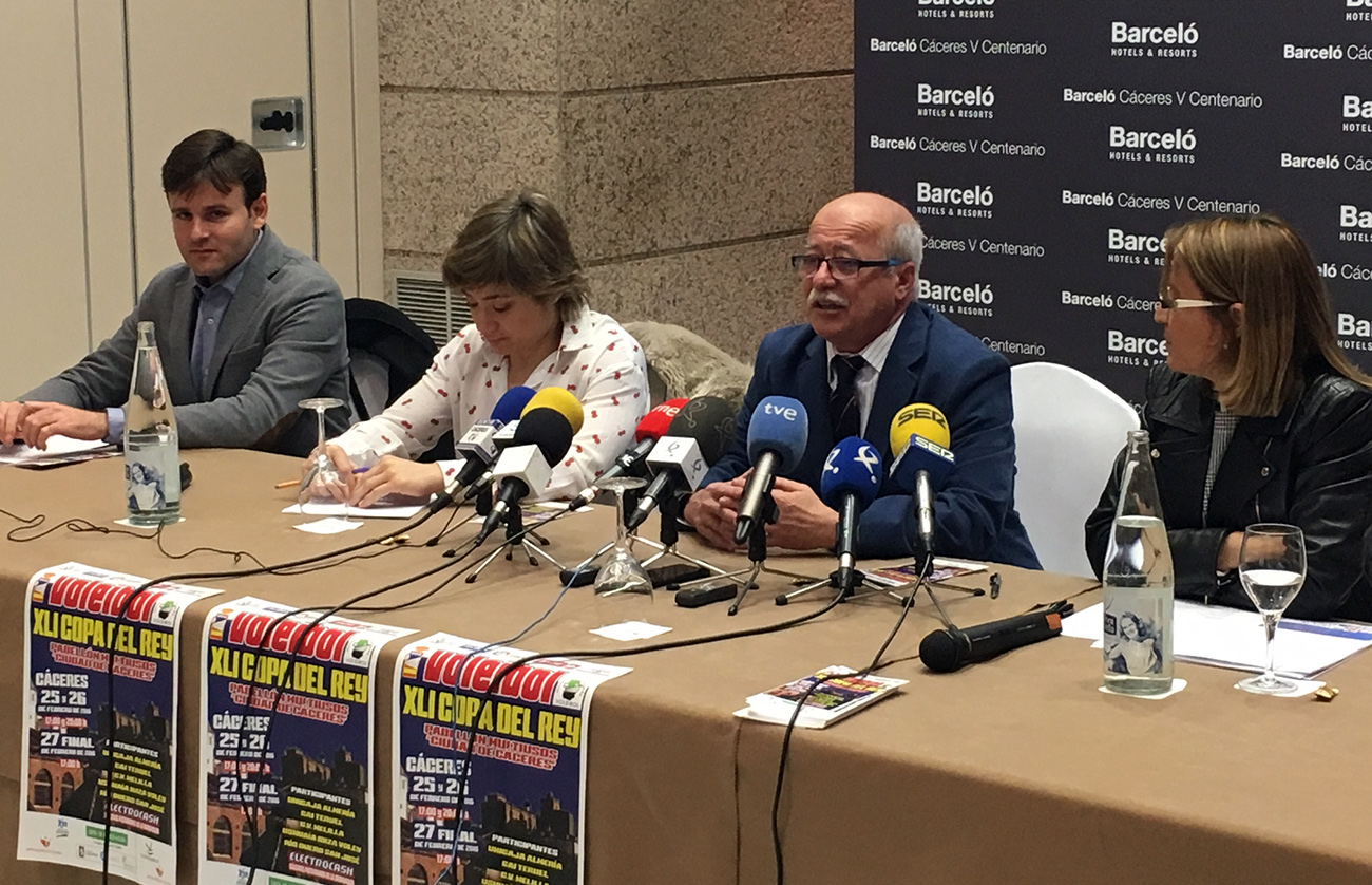 La Copa del Rey de Voleibol 2016 arranca en el pabellón Multiusos de Cáceres este jueves. Se iniciarán así tres días apasionantes que concluirán el sábado con la proclamación del nuevo campeón copero. Antes de que la ciudad extremeña comience a vibrar con el espectáculo del mejor voley nacional, se ha celebrado la presentación del evento ante las autoridades.