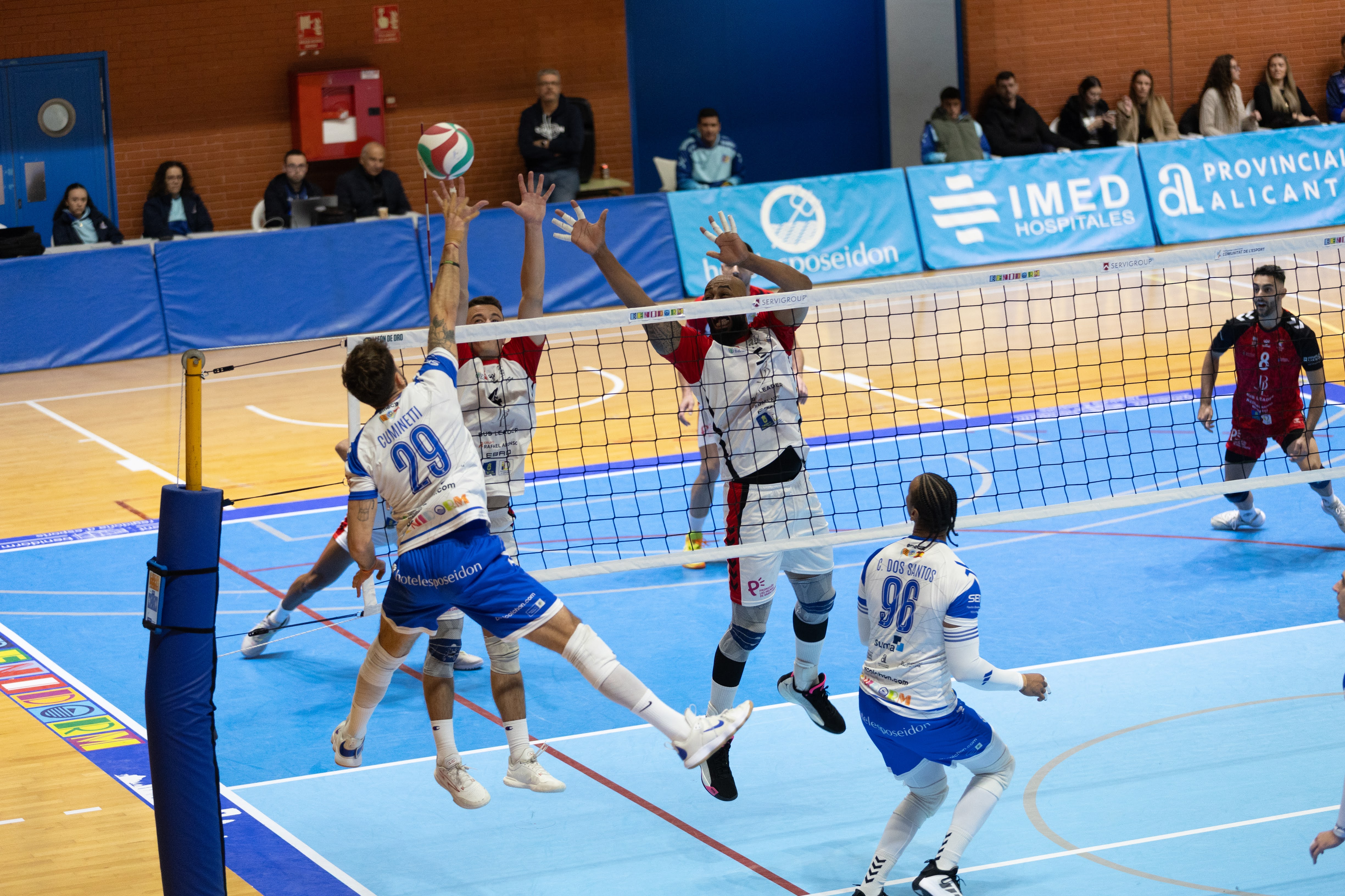 El opuesto benidormense cerró el encuentro como máximo anotador con 20 puntos, mientras que Ponzio sostuvo a San Roque hasta el final, protagonizando un interesante duelo ofensivo a lo largo de todo el choque.