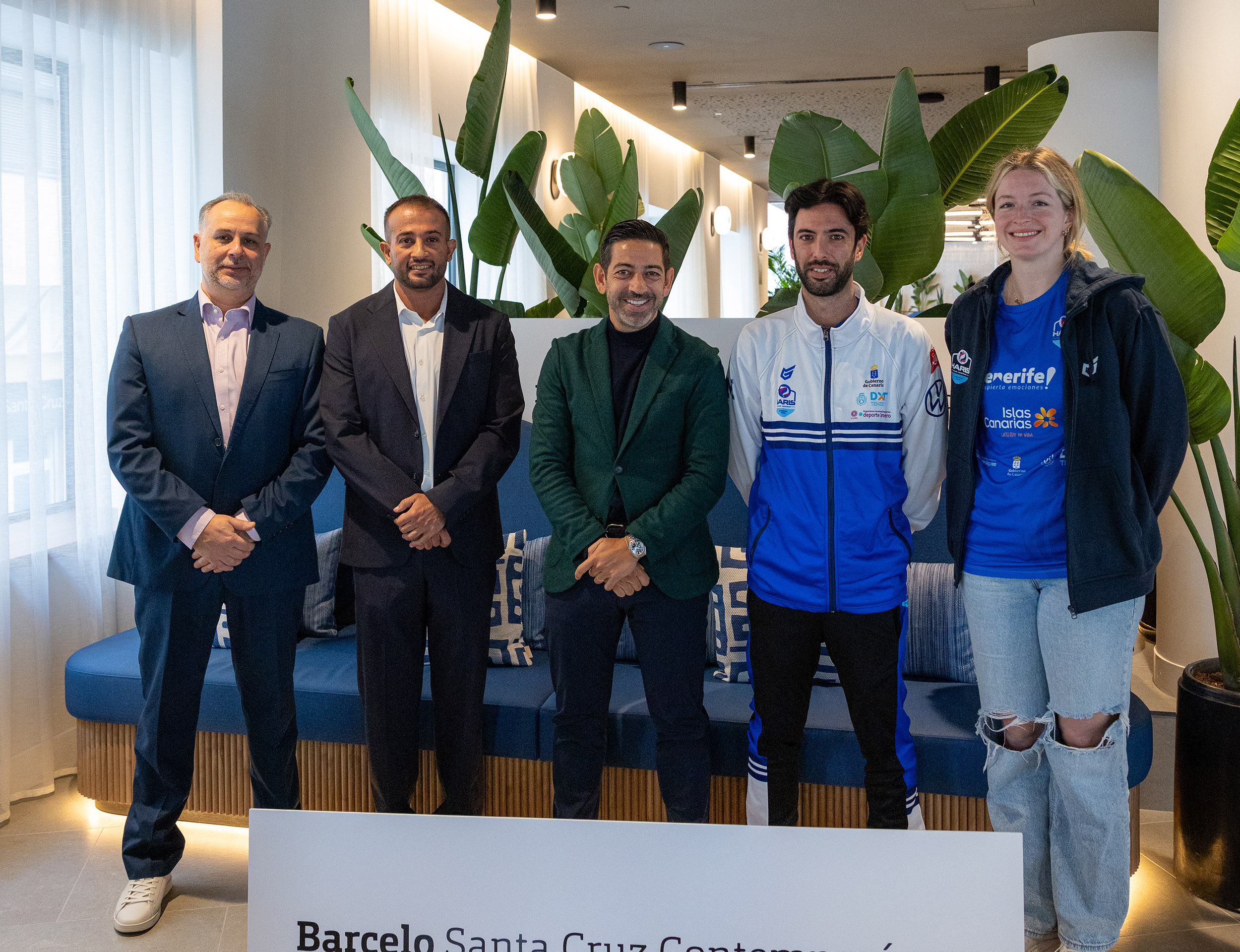 El hotel Barceló Santa Cruz Contemporáneo acogió este miércoles, 14 de enero, la presentación oficial del acuerdo de patrocinio entre el grupo hotelero y el Tenerife Libby’s La Laguna. En el acto intervinieron el presidente de la entidad blanquiazul, David Martín; el director comercial de Barceló Hotels en Tenerife, Pablo Ojea Camiña; y el jefe de ventas del establecimiento santacrucero, Sigvald Karlsen Marrero. El evento sirvió además como escenario para la presentación oficial de las dos nuevas incorporaciones del mercado de invierno: el entrenador Ricardo Lemos y la jugadora Alli Cudworth, que posaron con sus nuevos colores.