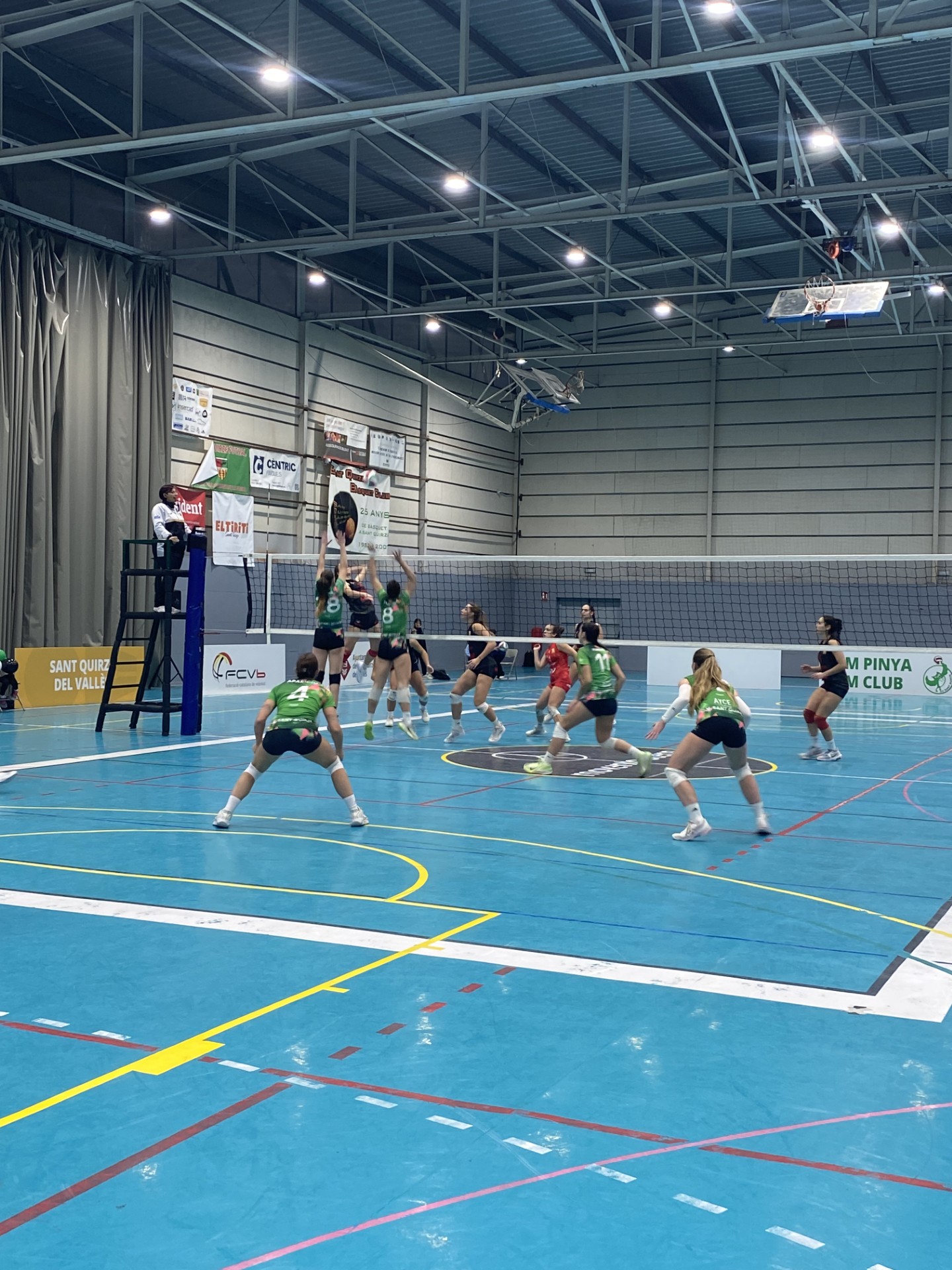 Similar situación se da en el Grupo B, donde Barça (líder con 32 pts), AVK Voleibol Sant Just (segundo también con 32 pts) y Élite Vóley El Rosario (tercero con 31 pts) no fallaron y endosaron los tres un 3-0 a sus respectivos rivales, CV Zaragoza, Vallbona Protegim y Barnadental CV Premiá de Dalt. Por otro lado, Club Voleibol Sant Cugat asaltó a domicilio a CV Sant Quirze (0-3), CV Vall d'Hebrón ganó a Grau Élite Cementos en casa (3-0) y JS Hotels Cide Palma sufrió para vencer en su pabellón a CVS U Energía Sóller (3-2).