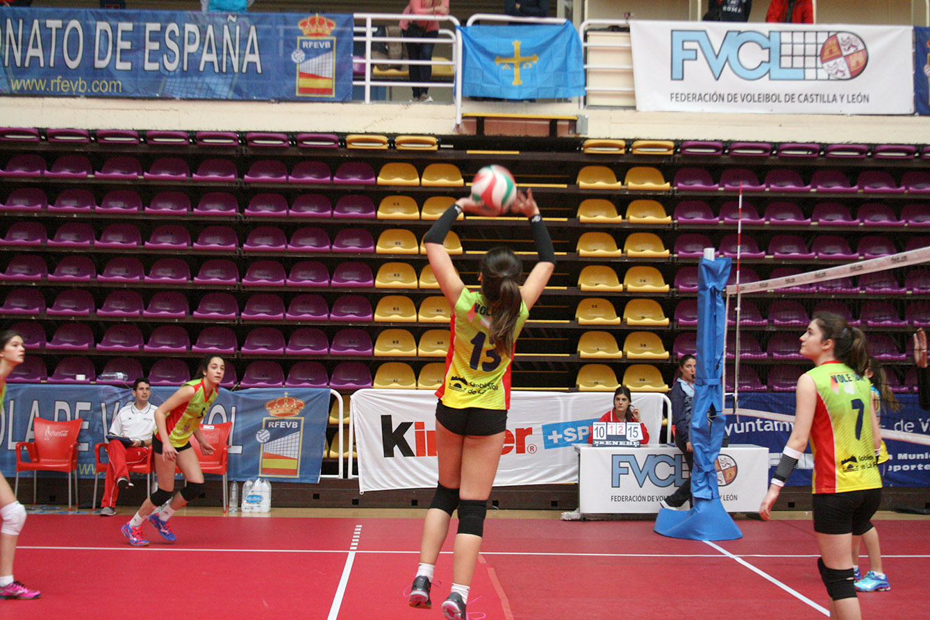 El torneo cadete femenino inició con espectacularidad el esfuerzo de los 16 equipos participantes. En las pistas del Polideportivo Lalo García y Polideportivo Parquesol deparó una sensacional jornada inaugural. En el grupo A Madrid y Cataluña superaron con claridad a La Rioja y Aragón. Más igualdad hubo en el grupo B donde Canarias necesitó del tiebreak para superar a Castilla La Mancha. En el otro choque del grupo Andalucia venció en tres sets a las locales, Castilla León. El grupo C dio sus primeros pasos bajo el control de Galicia y Cantabria que sumaron la victoria en tres parciales sobre Navarra y Extremadura. Comunidad Valenciana e Islas Baleares arrancaron con triunfos su periplo por el Grupo D derrotando a Murcia y Asturias.
