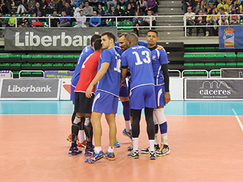 CV Melilla - Ushuaïa Ibiza Vóley CV Melilla festejando un punto