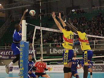 CV Melilla - Ushuaïa Ibiza Vóley El remate melillense supera el bloqueo de Diedhiou y Ronchi