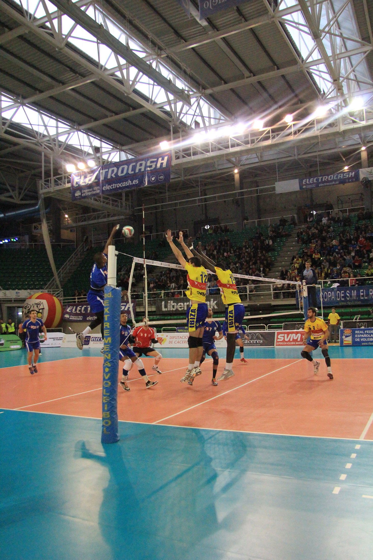 CV Melilla - Ushuaïa Ibiza Vóley Aitor Canca rematando un primer tiempo